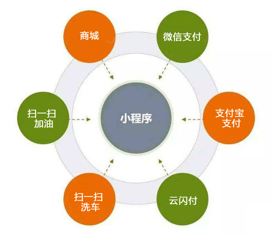掃一掃洗車(chē)、掃一掃加油、即時(shí)溝通、商城購(gòu)物等